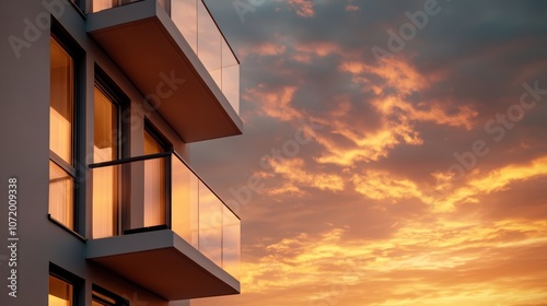 sunset, building, modern, facades, vibrant, sky, urban, silhouette, exterior, architecture, peace, serenity, contemplation, beauty, inspiration, contrast, aesthetic, contemporary, structure, window, glasses, evening, skyline, city, apartment, balcony, orange, red, cloud, dusk, view, modernism, scenic, calmness, peaceful, relaxing, calm, vista, 21st century, city landscape