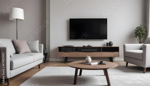 A modern living room with sofa armchair and television theme