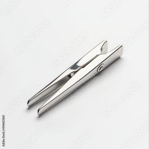 A modern metal clothespin with a sleek, minimalist design and polished surface on a white background