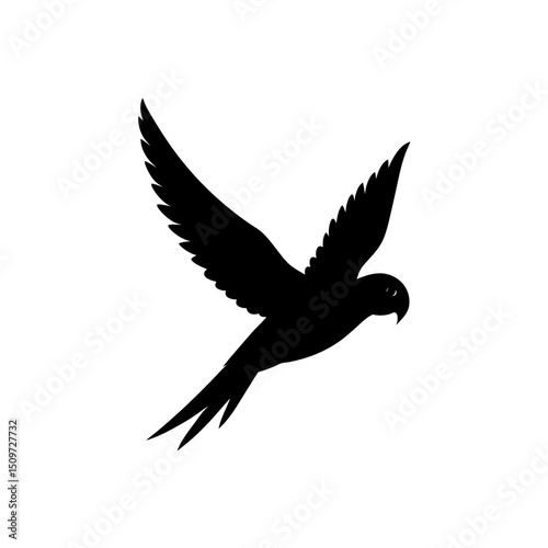 A Monochrome Side Profile Graphic of a Flying Parakeet a High Quality Vector Art