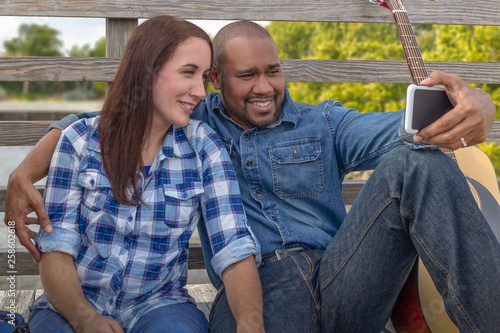 sharing, selfie, human relationships, multiracial, countryside, african american, background, black, couple, love, overcast, park, people, picnic, tree, vacation, white, camp, caucasian, mobile phone, cheerful, closeup, country, deck, denim, fall, female, flirt, forest, girlfriend, happy, husband, joy, laughing, leisure, lover, mixed race, mountain, playing, relax, retreat, sitting, smartphone, smiling, spring, sunny