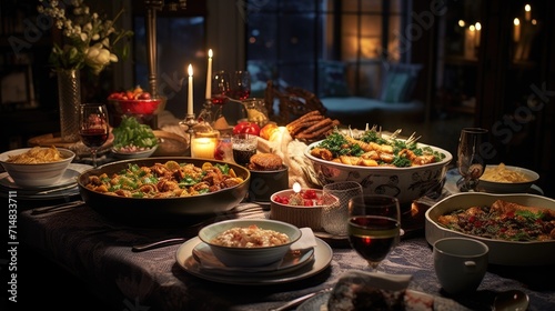 A neighborhood potluck dinner showcasing a diverse array of dishes from various cultural backgrounds, bringing together a rich tapestry of flavors and culinary traditions.
