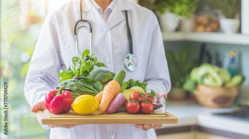 dietitian, health food, vegetable, fruit, labcoat, healthy diet, fresh produce, dietitian, health care, nourishment, bell pepper, lemon, broccoli, carrot, tomatoes, vitamin, wellness, organic food, balanced diet, stethoscope, greener, lifestyle