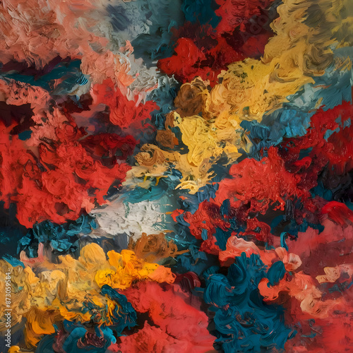 A painting with many colors of paint on it
