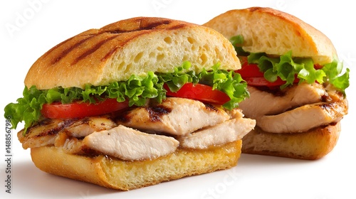 sandwich, chicken, grilled, food, delicious, tasty, lunch, meal, healthy, tomatoes, lettuce, bread, epicure, fresh, closeup, appetising, isolated, cookery, fast food, eatery, eat, plate, diet, nourishment, bun, sesame, ingredient, vegetable, macro, closeup, sliced, savoury, deliciously, white, background, studio, prepared, cut, seasoned, homemade, mouth-watering, honed, burger, chicken breast, crispy, grilled chicken