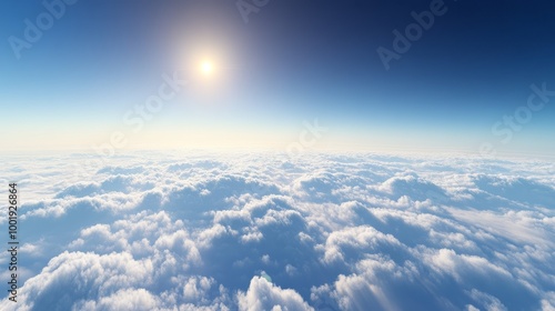 panoramic, landscape, up high, sparse, cloud, high-coloured, blue, sky, the, sun, small, bright, white, point, minimal, below, photorealistic, high, resolution, smooth, clear, expansive