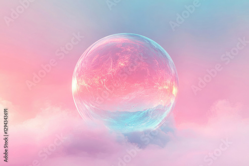 A pastel-colored sphere floats serenely above a soft, dreamy cloudscape.