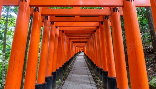 path, torii, gate, orange, wooden, perspective, tunnel, japanese, shrine, architecture, travel, red, temple, wood, structure, exterior, zen, calm, tranquil, sharpened, symmetry, depth, forest, tree, nature, paseo, paved, stone, pillar, black, colours, vibrant, detail, geometric, design, ancient, tradition, journey, entrance, tour tourism, photo, photo
