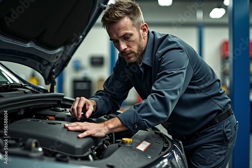 man, working, on, car, engine, garage, mechanic, repair, bricolage, project, automotive, vehicle, machinery, tool, equipment, manual labor, labourer, craftsman, handyman, auto, transportation, machine, industry