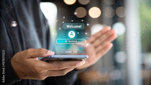 a person's hands holding a smartphone with a "Welcome" message and a login interface displayed on the screen
