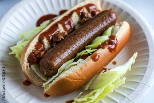 A photo of a hot-dog with cabbage and a meatless sausage