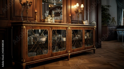 A photo of a rack of elegant credenzas and buffets.