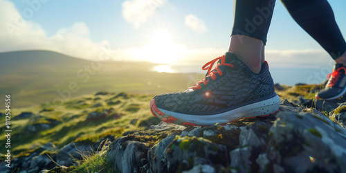 horizontal, landscaped, exploration, male, person, discovery, training, fitness, sport, exercise, freedom, foot, outside, leg, photo, unrecognizable, shoe, one person, adult, young adult, healthy, lifestyle, outdoors, motion, sky, walking, equipment, vacation, activity, trail, climbing, footwear, journey, scenic, nature, boot, travel, color image, closeup, summer, terrain, adventure, hill, healthy lifestyle, mountain, trekking, hiking, footpath