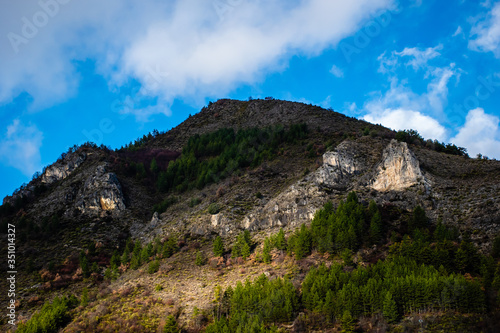 A picturesque view of a high cliff's peak in the French Alps on a sunny day (Veynes, Hautes-Alpes, France)