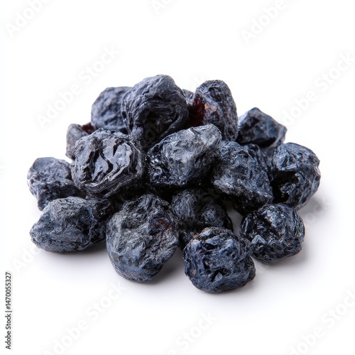 A Pile of Delicious Black Raisins Isolated on White Background for Food and Drink Applications