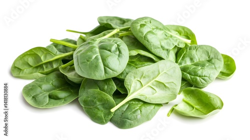 A pile of fresh, vibrant green spinach leaves isolated on a white background. Perfect for healthy eating and culinary applications.