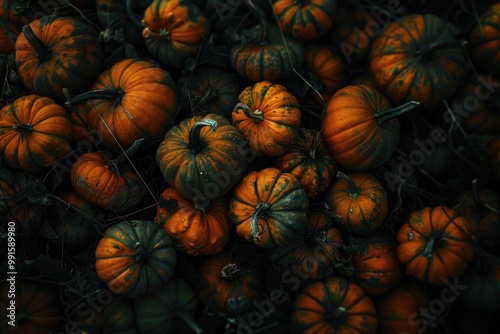 A pile of small pumpkins stacked on top of each other, often used as a decorative centerpiece or prop in autumn-themed settings