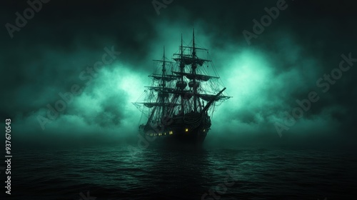 pirate, mysterious, ship, fog, eerie, haunted, sailing, mist, skittish, glow, myth, legend, horror, nautical, death, fear, twilight, dark, ocean, skull, night, supernatural, phantom, spectral, sea, maritime, foreboding, ghostly, atmospheric, ominous