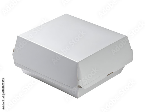 A plain, closed cardboard food container with a sleek, modern design suitable for takeout or delivery purposes