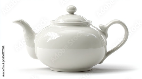 teapot, ceramic, white, round, lid, handle, off-white, kitchen, porcelain, vessel, tea, hot, warm, hot drink, beverage, cup, crockery, cooking, home, tableware, elegant, simple, classic, smooth, glossy, empty, object, isolated, studio, still, life, light, shadow, modern, dish, functional, quality, fine, ware, teapot, dinner, drink, brew