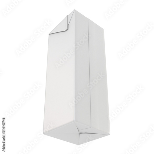 A plain, white tetrahedron-shaped carton, typically used for packaging liquids like milk or juice.