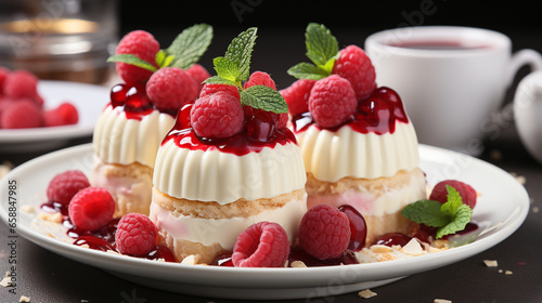 A platter of raspherry and white chocolate mousse cup UHD wallpaper Stock Photographic Image