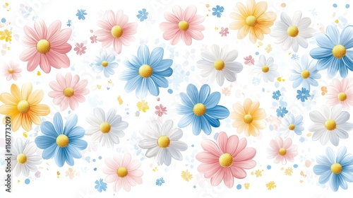 A playful and cheerful daisy pattern in soft pastel colors, perfect for spring-themed products and designs.