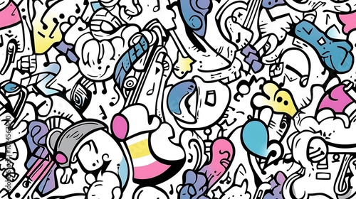music, pattern, seamless, microphone, guitar, earphones, record, note, outline, colours, striking, theme, vibrant, element, creative, pattern, illustration, sound, style, festival, lively, performance, dynamic, concert, design, colourful, artistic