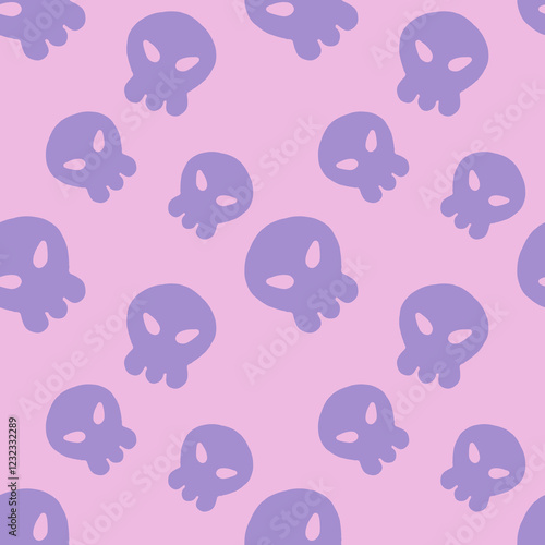 A playful skull repetitive pattern with kawaii Halloween skulls and quirky skeleton motifs creates a whimsical, spooky texture perfect for Halloween pattern