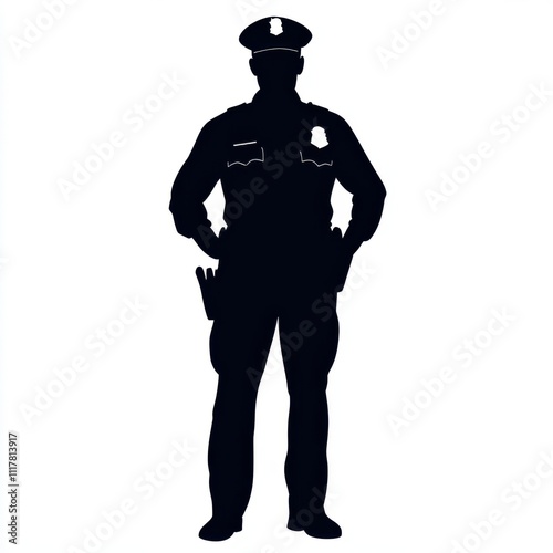 police, officer, standing, front, white, background, wearing, black, uniform, holding, security, authority, gun, ready, concept, power, vector, police officer, person, cop, community, man, illustration, guard, law, job, protection, occupation, profession, service, patrol, male, safety, silhouette, professional, badge, cap, sheriff, cartoon, symbol, character, icon, work, enforcement, human, force, crime, hat, emergency