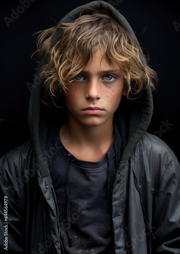 A Portrait of a Young Homeless Person-Black Background