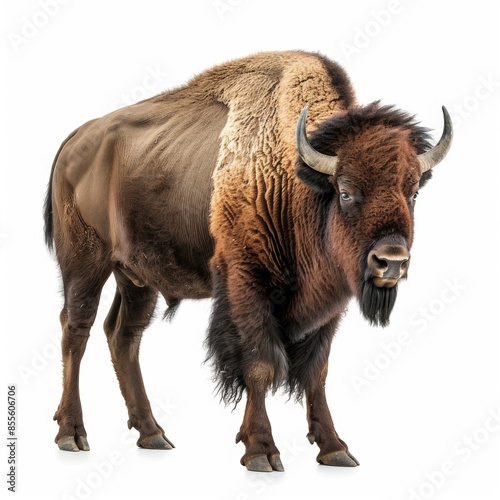 bison, standing, strong, animal, mammal, wildlife, nature, isolated, white background, majestic, powerful, buffalo, north america, wild, strength, large, herbivore, hairy, fur, horned, beast, big, wilderness, iconic, symbol, native, fauna, muscular, sturdy, massive, impressive, dominant, mighty, resilient, prairie, conservation, endangered, formidable, imposing, solitude