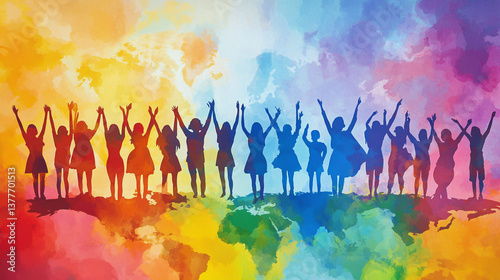 A powerful illustration of diverse people holding hands in unity, symbolizing human rights, dignity, and equality.