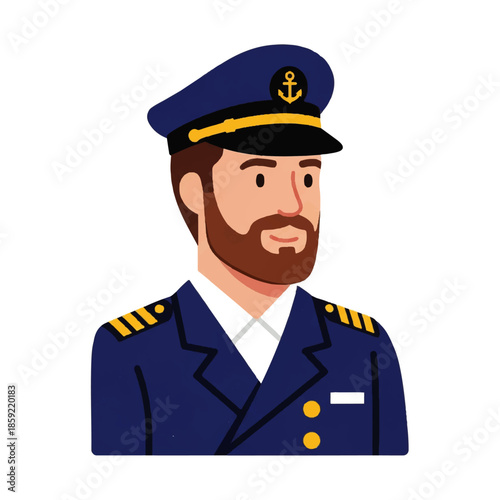 A Professional Captain in Uniform with a Hat, Depicting Maritime Authority and Leadership in a Flat Design Style