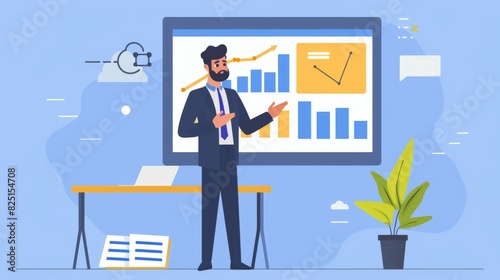 professional, leader, character, flat, style, illustration, delivering, business, presentation, office, environment, highlighting, leadership, attire, simple, background