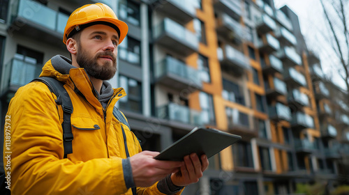 A property manager inspecting an apartment building, ensuring maintenance and safety standards are met.