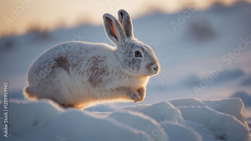 rabbit, snow, winter, landscape, nature, wildlife, animal, fur, ear, hopping, cold, environment, sunset, outdoors, motion, cute, mammal, paw, habitat, serene, beauty, scenery, snowflake, playful, agile, light, shadow, tranquil, wild, exploration, freedom, snowdrift, fluffy, dawn, dusk, adventure, ecosystem, fresh, crisp, natural, photo, seasonal, whisker, snow-covered, peaceful