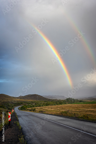 A rainbow after a Karoo storm along the N12 just outside Klaarstroom. Western Cape. South Africa