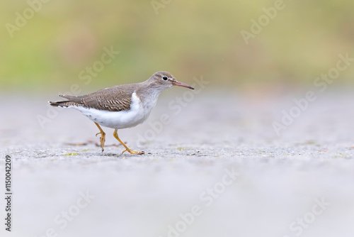 A rare spotted sandpiper (Actitis macularius) photographed at a low point of view.
