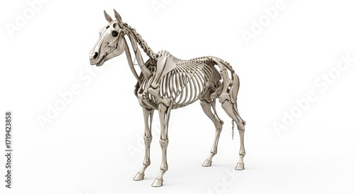 horse, skeleton, animal, anatomy, bone, equine, mammal, vertebrate, creature, organism, structure, form, shape, outline, silhouette, profile, side, view, full, body, complete, whole, entire, all, part, piece, component, element, detail, realistic, render, three-dimensional, computer, generated, digital, art, illustration, drawing, graphic, design, white, background, studio, isolated, clean, simple, minimalist, stark, contrast