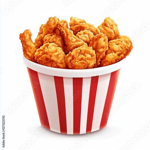 A realistic illustration of a bucket filled with crispy, golden fried chicken on a clean white background.