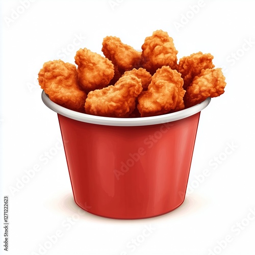 A realistic illustration of a bucket filled with crispy, golden fried chicken on a clean white background.