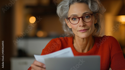woman, kitchen table, bill, distressed, laptop, finance, evening light, sombre, contemplative, budgeting, home office, personal finance, paperwork, technology, living room, financial crisis, domestic life