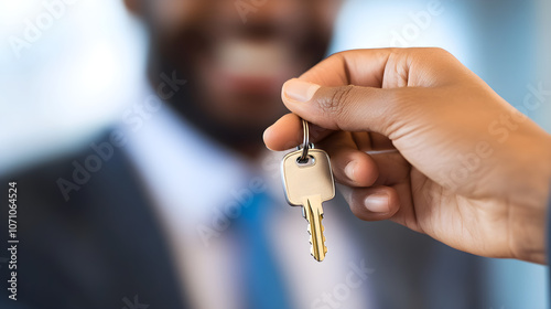 A realtor handing over the keys to a new home to excited buyers after signing the agreement