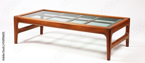 A rectangular wooden coffee table with a glass top, perfect for both indoor and outdoor settings. The table features a wood stain finish and is showcased on a white background