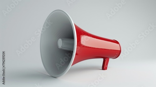 A red and white megaphone on a plain white background. Suitable for promotional or communication concepts