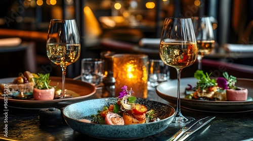A refined atmosphere with deep tones and a selection of gourmet small plates