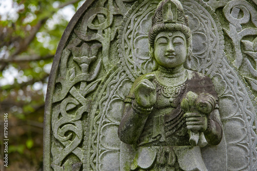 A religious stone statue of Mahasthamaprapta at Japanese buddhism temple