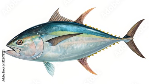 A repeating illustration of vibrant tuna in animated poses, designed for children's books or themed wallpaper.