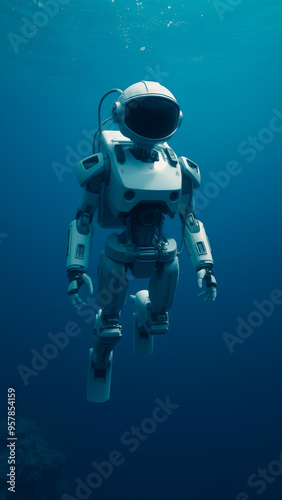 robot, underwater, diving, deep, sea, futuristic, exploration, science, fiction, technology, ocean, water, blue, white, aqualung, suit, artificial, intelligence, aquatic, marin, life, submersible, future, environment, design, diver, océano, research, earth, submarine, robotic, engineering, innovation, discovery, oceanography, creature, vehicle, scenery, equipment